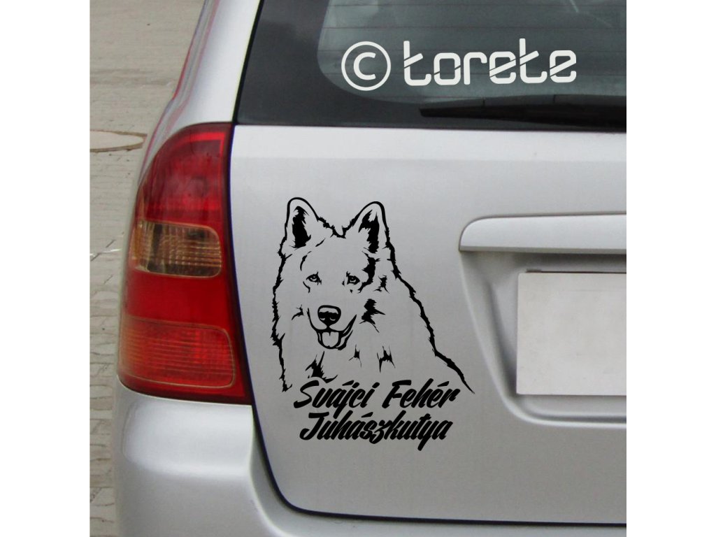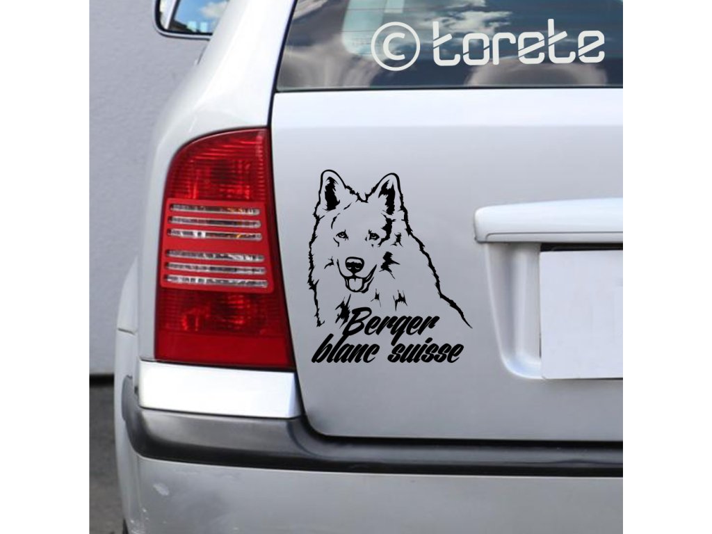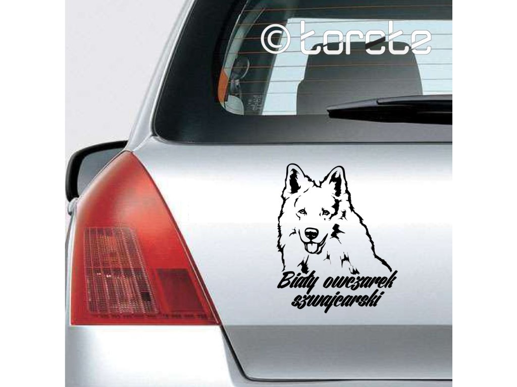 Bílý švýcarský ovčák – nálepka 19 x 16 cm