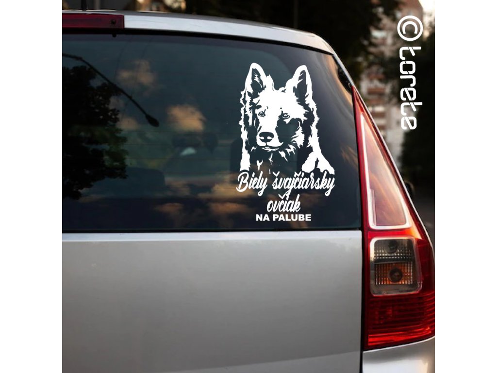 Bílý švýcarský ovčák – nálepka 20 x 12,5 cm